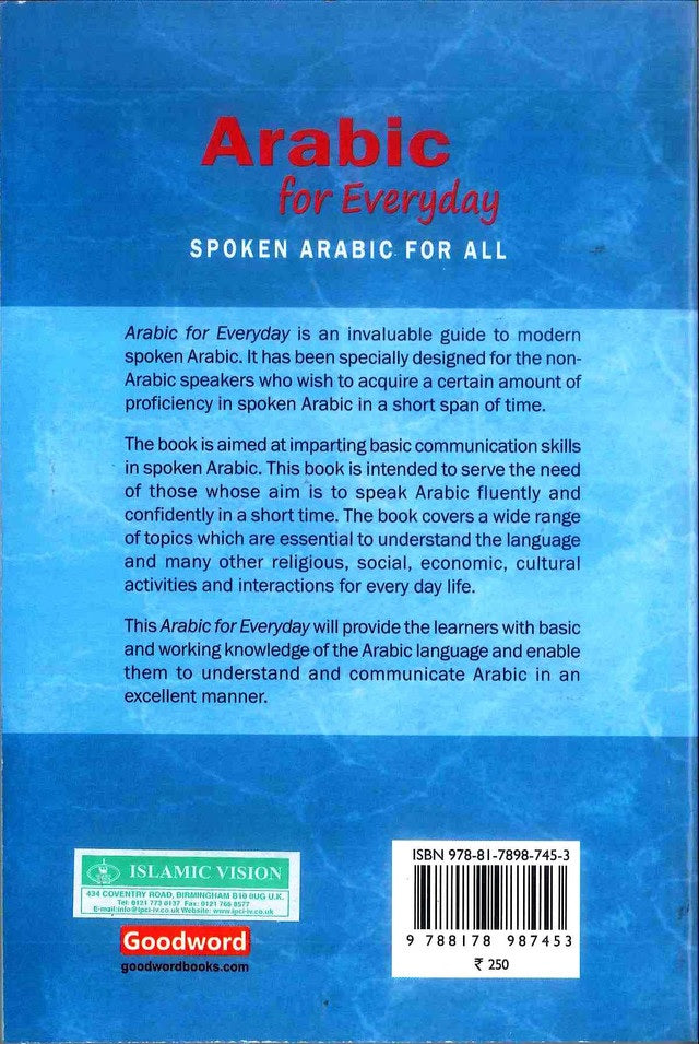Arabic for Everyday is an invaluable guide to modern spoken Arabic. It has been specially designed for the non-Arabic speakers who wish to acquire a certain amount of proficiency in spoken Arabic in a short span of time.