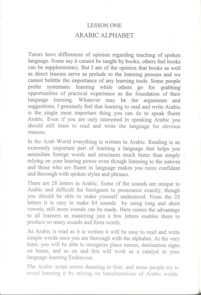 The book is aimed at imparting basic communication skills in spoken Arabic. This book is intended to serve the need of those whose aim is to speak Arabic fluently and confidently in a short time. The book covers a wide range of topics which are essential to understand the language and many other religious, social, economic, cultural activities and interactions for everyday life.