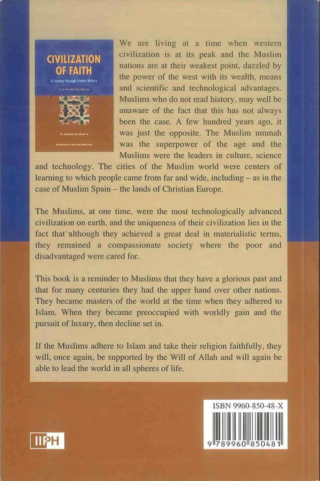 CivilIzation of faith Soft cover Author:Dr. Mustafa as-SibaaieBook By Language:EnglishBinding:soft coverPages:266Size cm:16x21Publisher:IIPHShelf Location 2:03AWeight:390g We are living at a time when western civilization is at its peak and the Muslim nations are at their weakest point, dazzled by the power of the west with its wealth, means and scientific and...