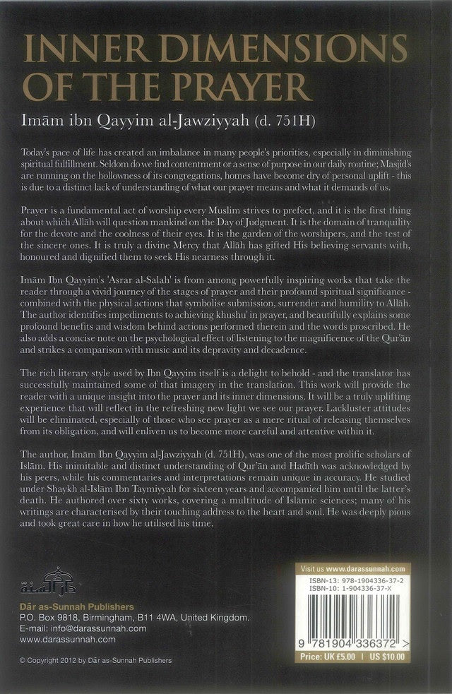 Inner Dimensions of the Prayer Author:Imam Ibn Qayyim al_jawziyyahBook By Language:EnglishBinding:Soft CoverPages:96Size cm:14x21Publisher:Daar Us-Sunnahweight:190g Today's pace of life has created an imbalance in many people's priorities, especially in diminishing spiritual fulfilment. Seldom do we find contentment or a sense of purpose in our daily routine; Masjid's are running on the...