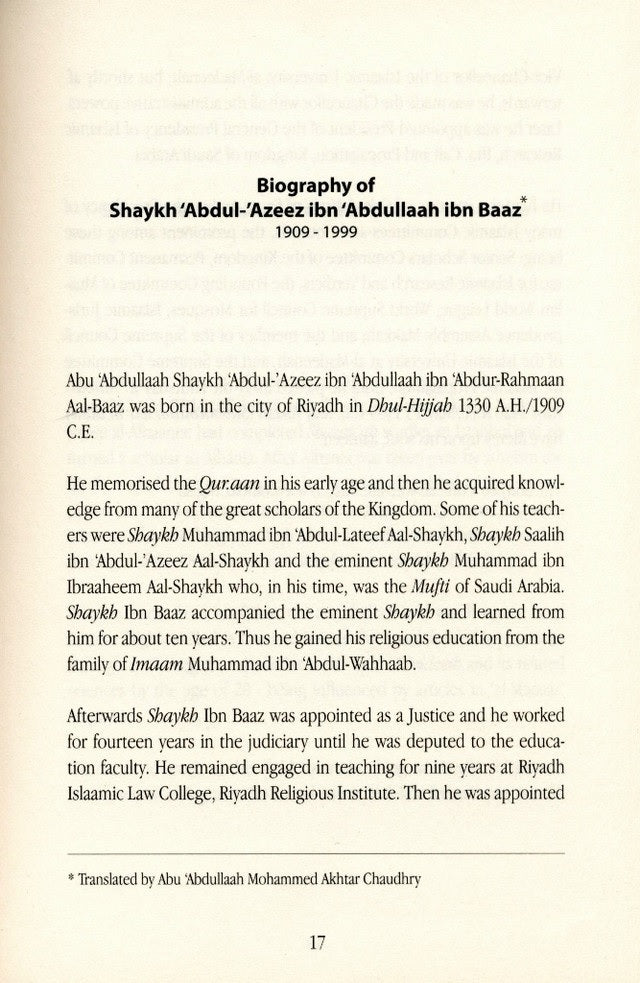 £20.00The Life of Imam Bin Baz Author:Shaykh, Dr Fahad al-FuhaydBinding:PaperbackPages:32Size cm:14x2... -