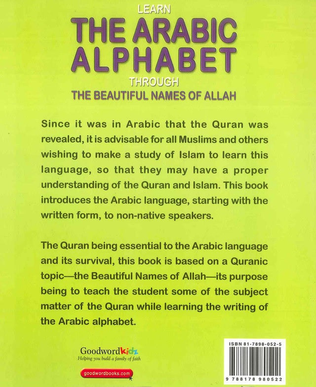 Learn The Arabic Alphabet Author:Assad Nimer BusoolBook By Language:EnglishBinding:S/CPages:61Size cm:21x27Publisher:Goodword. Since it was in Arabic that the Quran was revealed, it is advisable for all Muslims and others wishing to make a study of Islam to learn this language, so that they may have a proper understanding of the Quran...