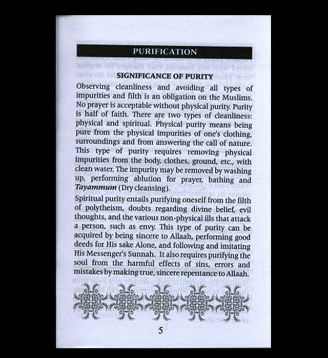 In this treatise the correct procedures of prayer (Salaah) are clarified for the new Muslim. The main objective of this work is to explain the steps of purification and prayer in a simplified manner in order to benefit the person who has recently accepted Islam. This information may also be beneficial for any Muslim.
