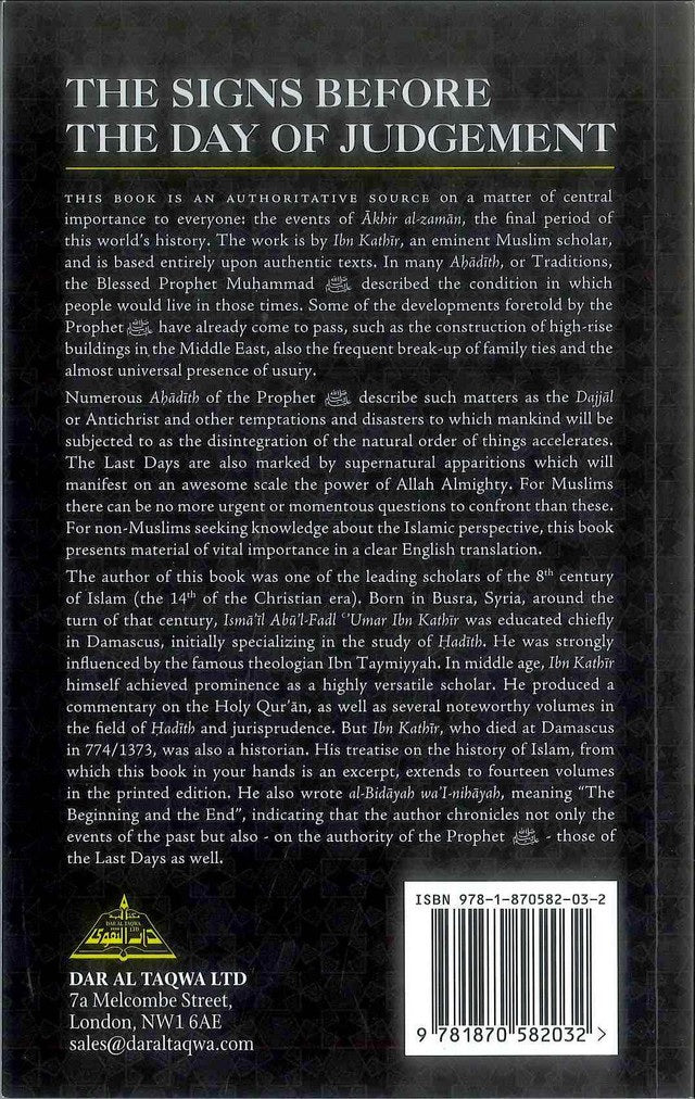 This publication is a brief but immensely popular work on the end of time and the day of judgement by one of the foremost scholars of Tafsir. This, a selection from the Arabic work al-Bidayah wa’l-nihayah.Have Questions? Ask An Expert