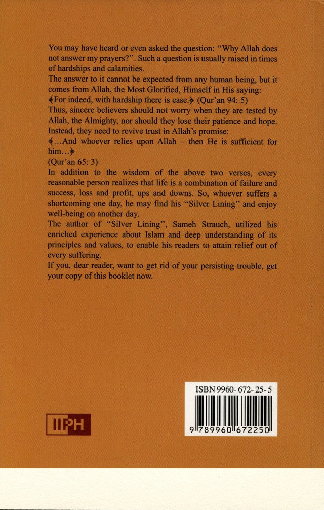 The theme of this book is relief after hardship, or as the old proverb has it, ‘Every cloud has a silver lining.’ The author, Sameh Strauch, explains this concept, describing, with evidence from the Qur’an and the Sunnah, why we are subject to trials and tribulations, and how, when adversity is at its worst, relief is near. He uses as examples the stories of the prophets and the trials they endured. Strauch then proposes measures to be undertaken to attain relief from difficulty, and explains the importance of tawakkul (depending upon Allah), the benefits and wisdom derived from the concept of hardship and relief, and much more. If you have ever been stricken by calamity and wondered why it happens, this book has the answer.