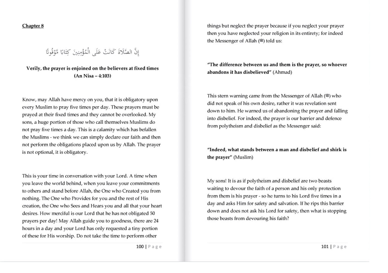 In this book, the author touches on a wide variety of topics that hold vast importance in the life of every Muslim. The book is written as an advice from a father to his sons' but the subject matter is applicable to all people.