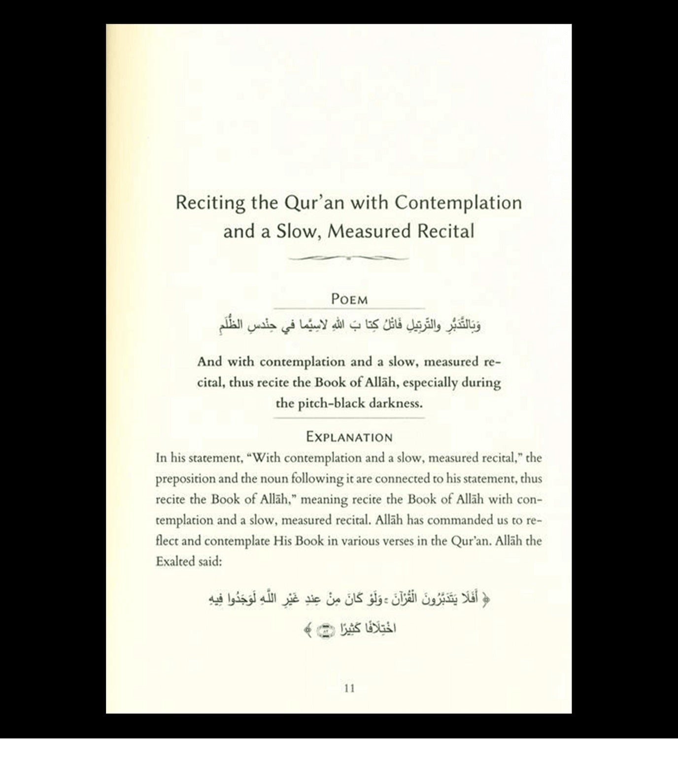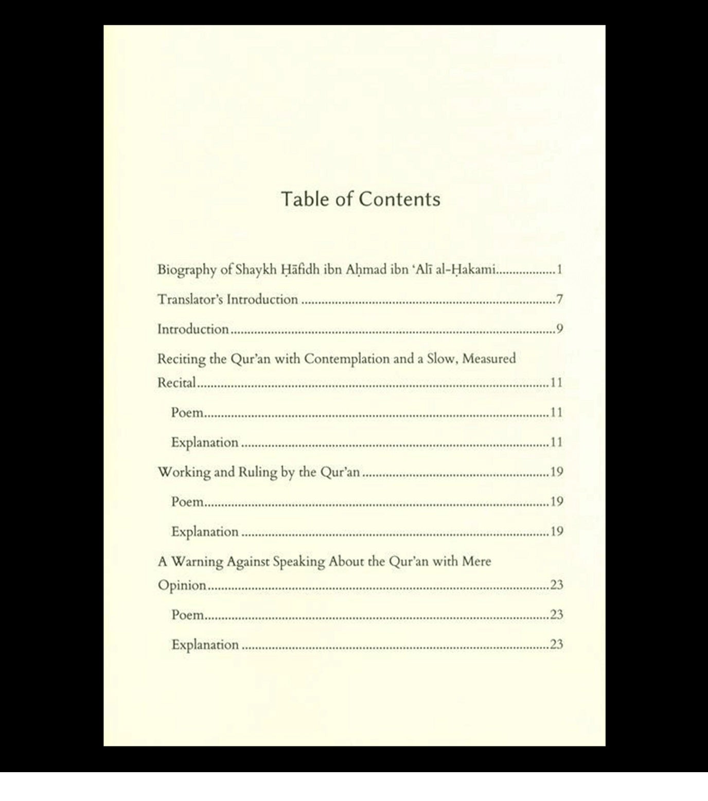 Various important topics are covered in this book; such as the miracle of the Qur’an, unclear verses in the Qur’an, healing from the Qur’an, contemplation of the Qur’an, the jinn who heard the Qur’an, the failure of those who tried to emulate the Qur’an, and many more. Hasan al-Basri said, “A person will say: ‘By Allah, I have recited the entire Qur’an and I have not neglected a single letter’; while in reality he has neglected the entire Qur’an. The Qur’an cannot be seen in his manners or his actions.”