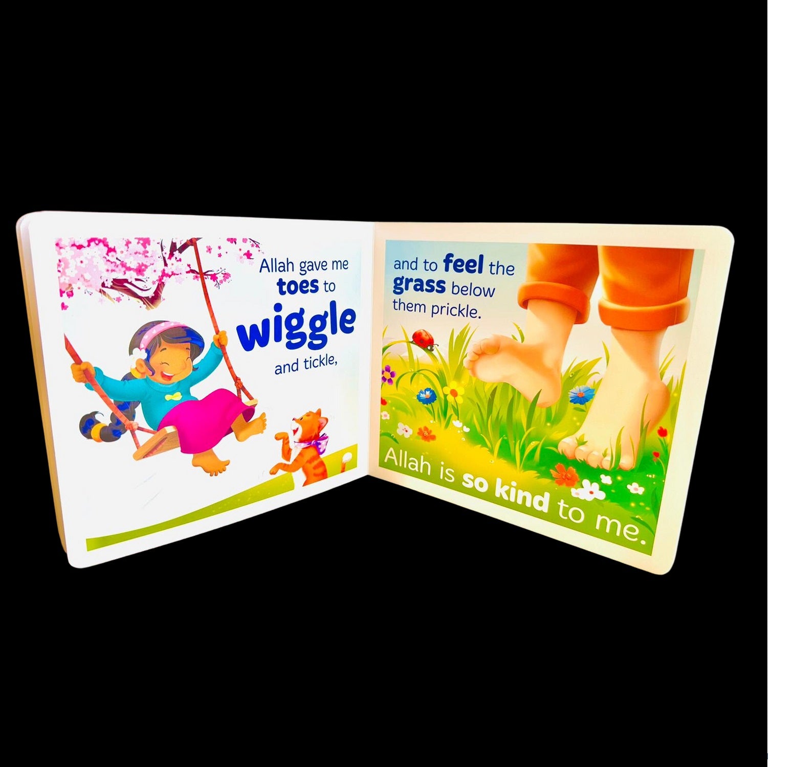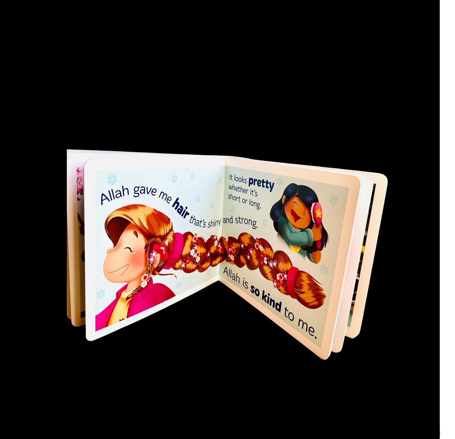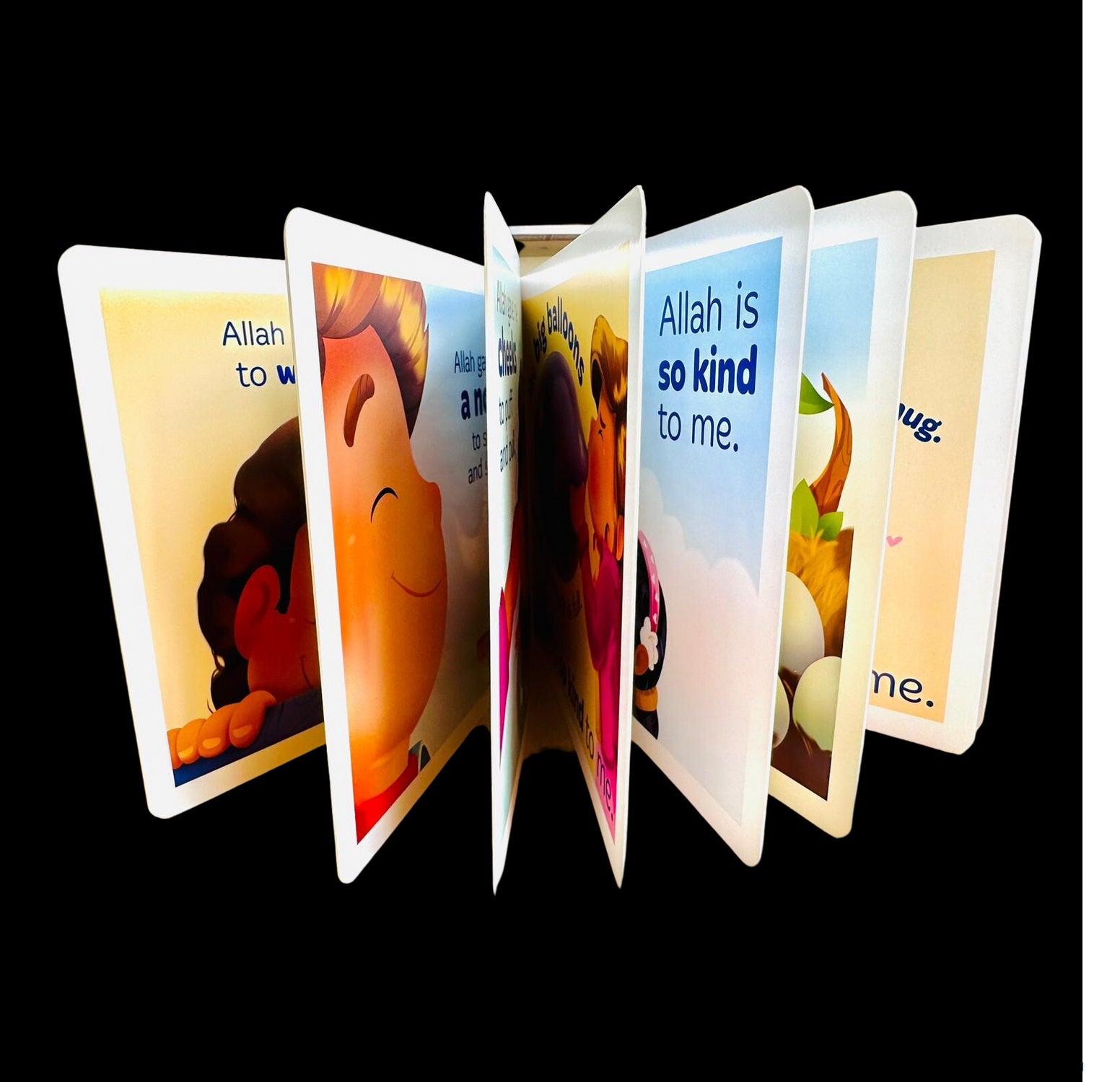 Captivating illustrations featuring boys and girls from different cultures all enjoying Allah’s kindness.