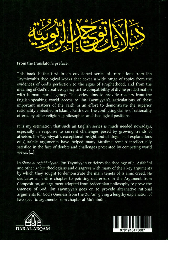 Ibn Taimiyyah on The Oneness of God Author:Taqi al-Din Ahmad ibn Abd al-Halim al-HarraniBinding:Soft CoverPages:119Size cm:15x22 cmPublisher:Dar al-Arqamweight:204g From the translator's preface:This book is the first in an envisioned series of translations from 1bnTaymiyyah's theological works that cover a wide range of topics from theevidences of God's perfection to the...